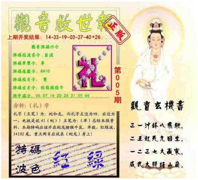 | 2026044期:五肖 |